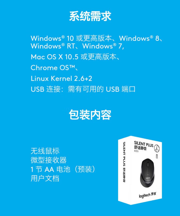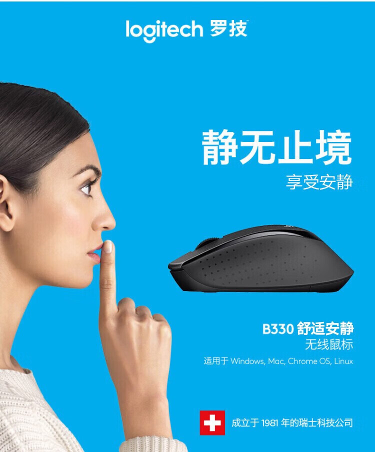 罗技(Logitech)无线轻音鼠标B330